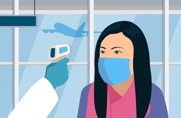 Coronavirus outbreak financial crisis graphic concept - A business leader pushing bar graph falling from COVID-19 virus pathogen.