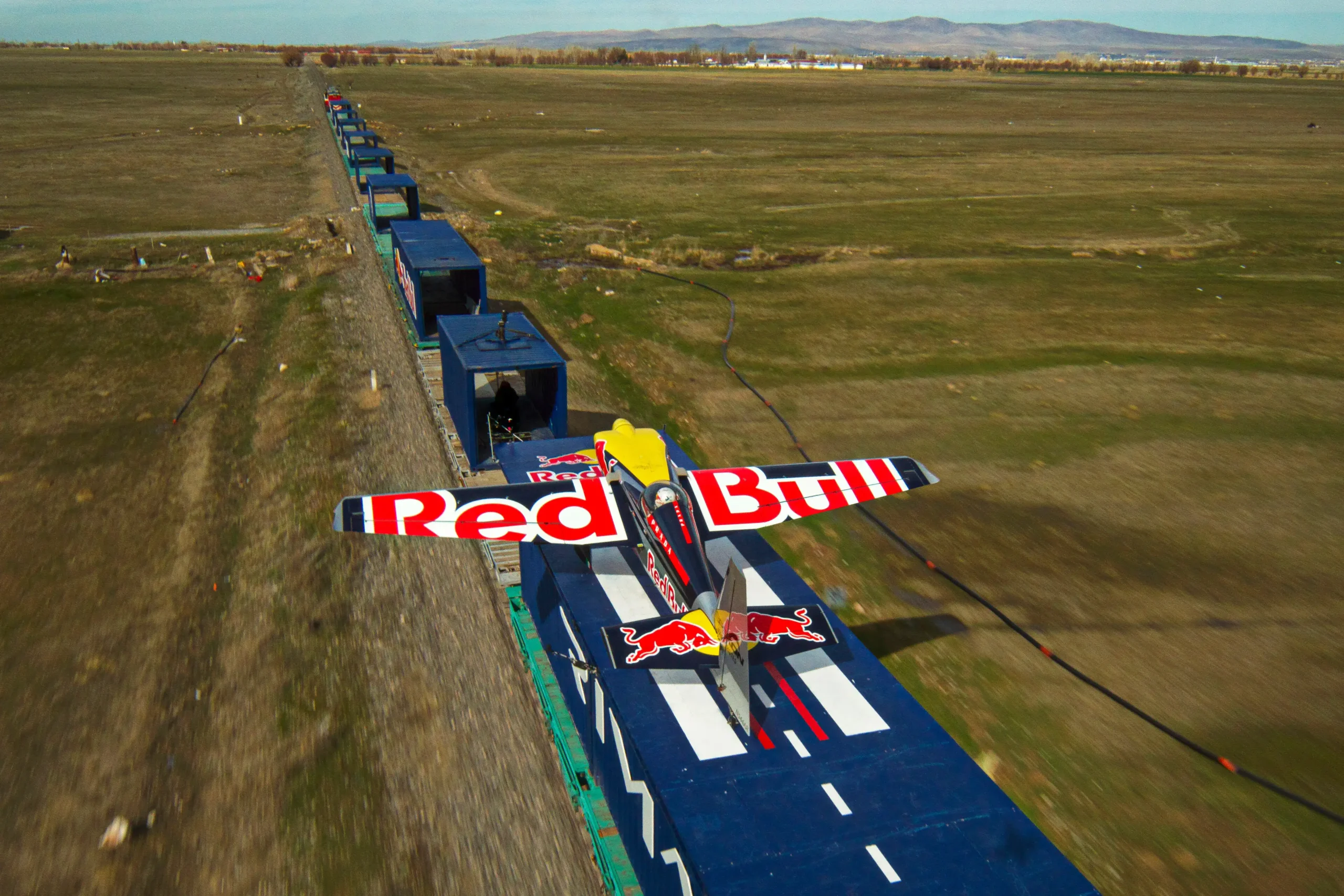 WATCH: Red Bull pilot lands plane on moving freight train in aviation first -