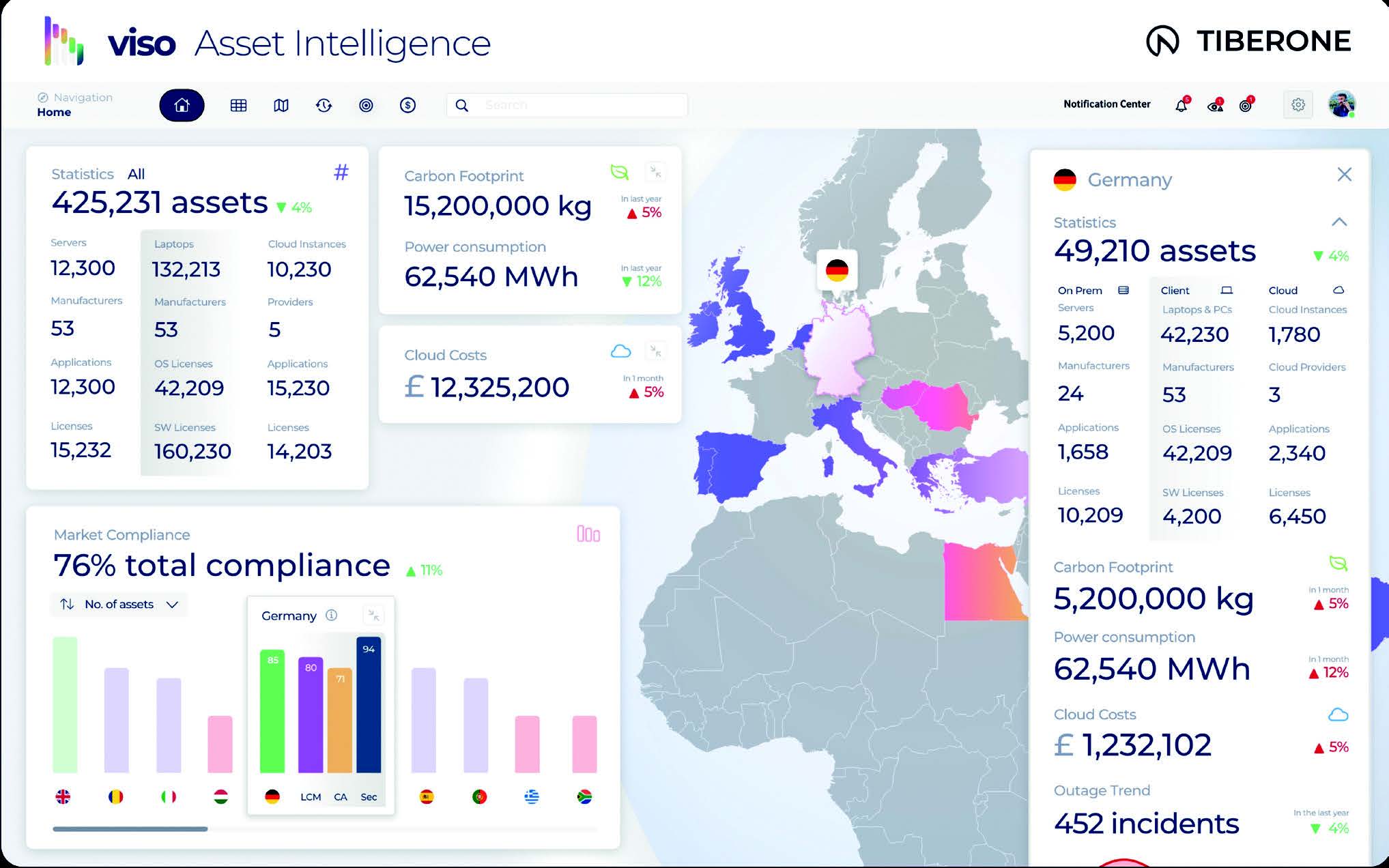At Tiberone, our aim with VISO Asset Intelligence is to overcome these challenges and provide business leaders with effective maps of their technology estates on which to define the path to the strategic goals. We are uniquely positioned with extensive knowledge, experience and partnerships to tackle this. Our background is service management tooling, so we know in depth how to integrate with the various vendors. For the last fifteen years we have built expertise in asset, configuration, and service modelling. Recently we have been working with a leading European university to prototype machine learning for the standardisation, reconciliation, and correlation of data to support several use-cases, including lifecycle management, security event triage, audit, and compliance. We also are working with partners on sustainability within the technology estate, eliminating in some cases, up to 30% on energy consumption and operating costs by right-sizing.
