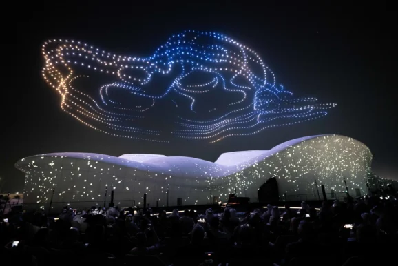 The launch night began with a performance by Italian pianist Ludovico Einaudi and ended with a display of 6,000 synchronised drones over the Saadiyat Island skyline, complete with fireworks.