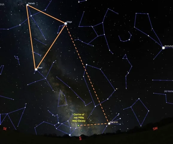From the Summer Triangle, we can trace our way towards the Milky Way’s enigmatic galactic centre – a super-dense region where a supermassive black hole, millions of times the mass of our Sun, exerts immense gravitational pull on the stars and gas around it.