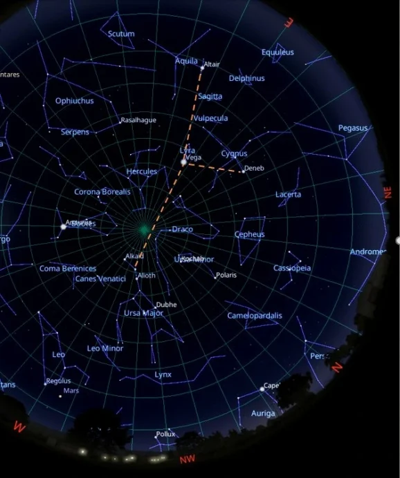 As summer approaches, the night sky becomes a dazzling stage for some of the year’s most striking celestial displays. Once again, we can use the Big Dipper as our starting point to explore the June skies and locate the distinctive Summer Triangle. This trio of stars shines brightly and widely across the heavens, resembling a giant sail guiding us through the cosmos.