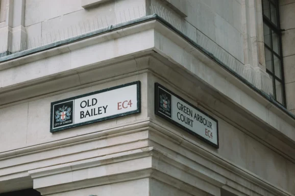 Street sign for the Old Bailey in London, home to the Central Criminal Court and the historic plaque commemorating Bushell’s Case and the independence of juries. Photo, Joaquin Carfagna/Pexels