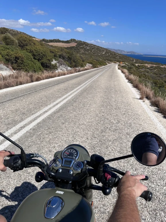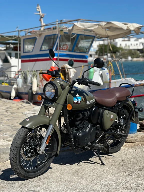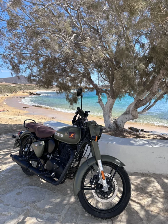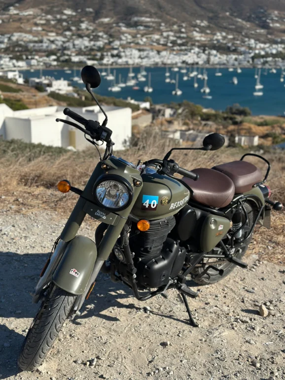 After a week exploring every corner of Paros and Antiparos, I reluctantly returned the bike to Chris at Ride Moto Rental. The Royal Enfield made touring Paros and Antiparos easy and enjoyable. It was comfortable on long days, drew admiring glances, and handled every road we tried. More than that, it was part of the setting. With its military paintwork and echoes of wartime history, it belonged on these islands every bit as much as the fishing boats and the chapels.