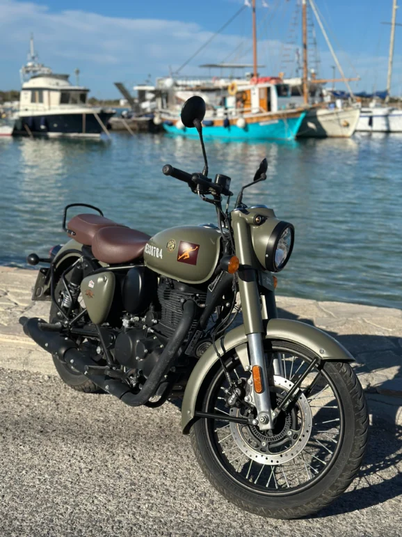 It is smooth, comfortable and easy to ride. The Classic 350 is designed for steady cruising rather than speed, which makes it well-suited to island roads, harbours and hilltop villages.