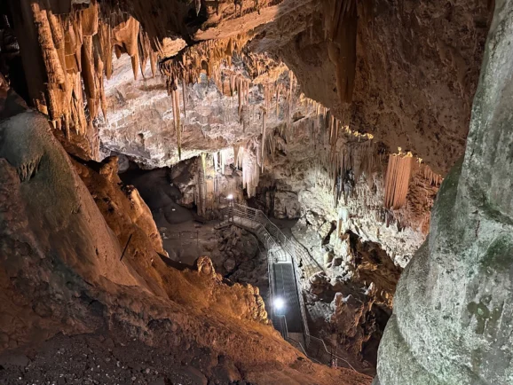 Antiparos Cave: a vast underground cavern with Europe’s oldest stalagmite and inscriptions dating back thousands of years.