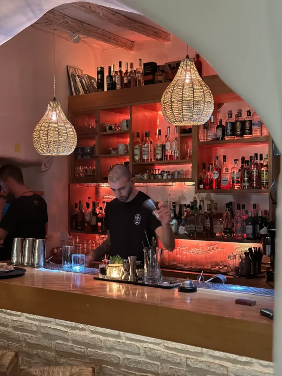 Evenings meant wandering the old port. Once a fishing harbour, it is now a maze of tavernas and bars. At Agosta we tried an Aegean Spritz by the water. Linardo’s music went on late into the night. Safran and Stilvi served food to rival any fine-dining restaurant, though always with relaxed island charm.