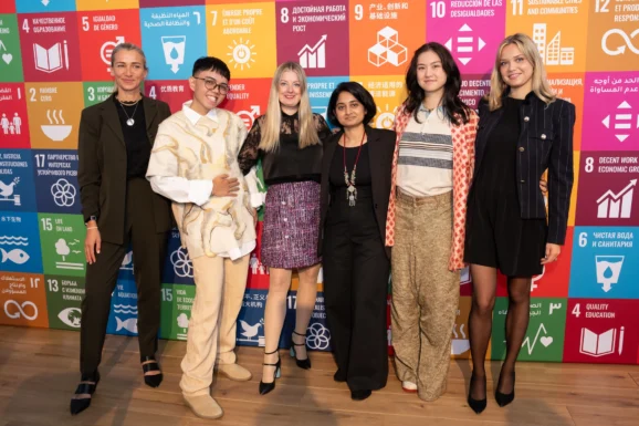 Alongside the discussion, a wider group of Redress Design Award alumni also joined the UNFLN. They included Aashita Jain (India), Ruyin Tian (China), Aarushi Kilawat (India), Ruwanthi Gajadeera (Sri Lanka), Lívia Aguiar de Castro (Brazil), Louise Boase (Australia), Rachel Clowes (UK), Rose Brown (UK), Magdalena Malbran (Argentina) and Silvia Acién Parrilla (Spain).