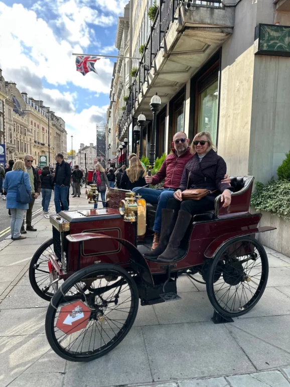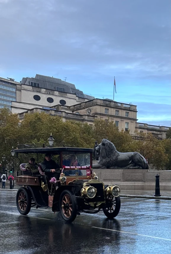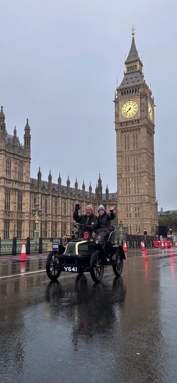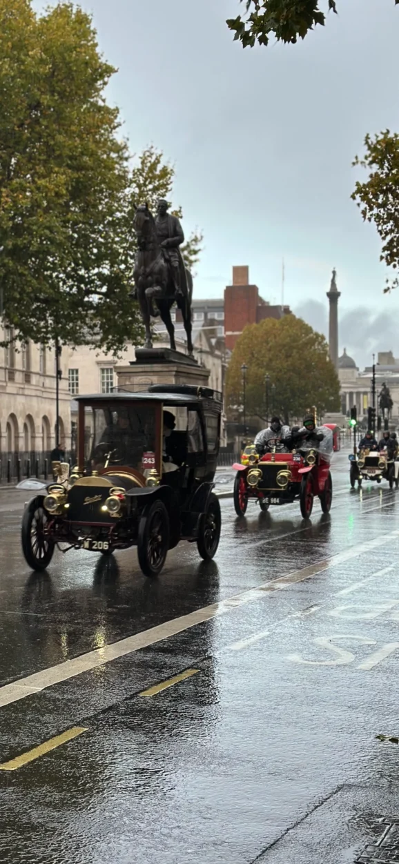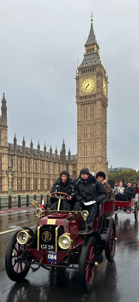 After several hours admiring and exploring — including a taxi dash to Westminster Bridge for extra photographs as the rain intensified — we wished the participants luck and retreated for a well-deserved breakfast. Over three-quarters of the entrants reached Brighton, a testament to their dedication to keeping these pioneering vehicles reliable and on the road. Sunshine and a spectacular sunset rewarded them at the finish — a fitting close to a memorable week.