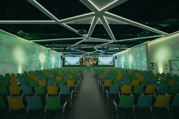 Prague’s infrastructure is unusually varied for a city of its scale. At one end is Cubex Centre Prague, opened in 2018 and already in demand through 2029. Part of the LEED Platinum-certified Trimaran complex, it draws on Czech Cubism for its design with geometric touches extending from walls down to drinking glasses. The space is highly customisable: corridors and staircases can be branded, the A1 hall seats up to 1,000 in theatre style with immersive LED walls and 360-degree projection, and the A3 hall connects directly to private offices for speakers or performers. A freight elevator even allows cars to be driven inside, making it popular for auto launches. Catering is flexible either in-house via InCatering or brought in, and limited parking is supplemented by the neighbouring Panorama Hotel. A metro station at the site is under renovation, promising even smoother low-impact access once reopened.