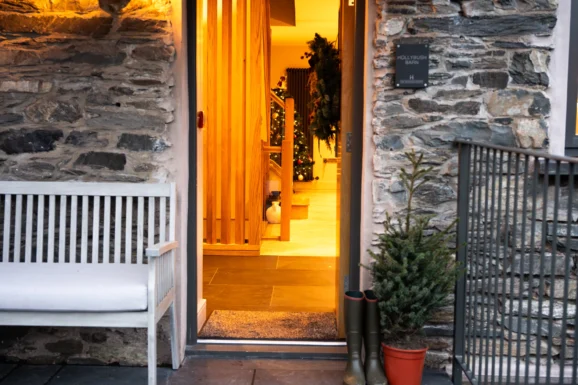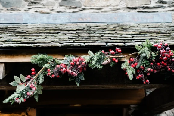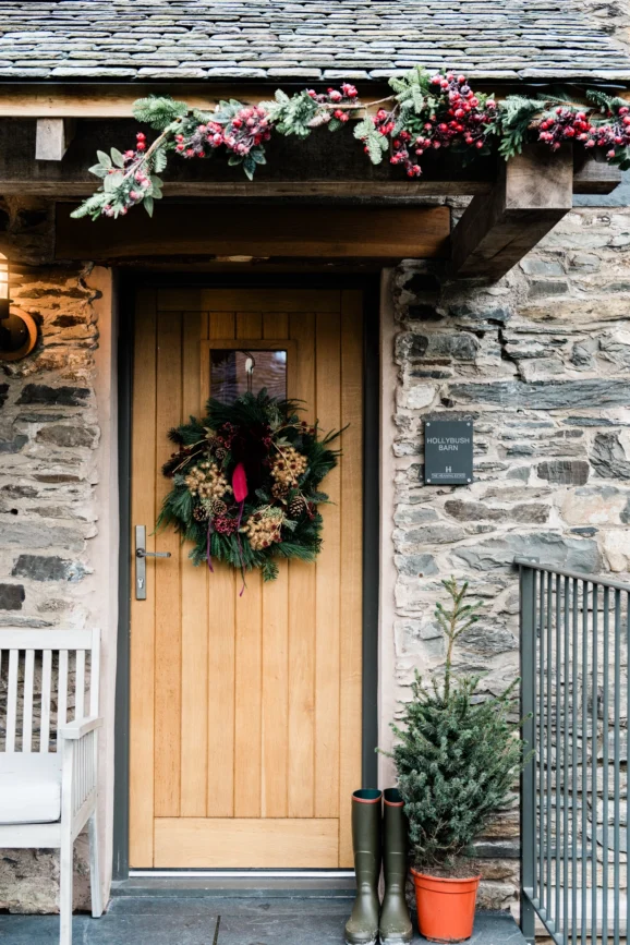 Then, it’s onto the exteriors. The local florist in Ambleside supplies our Christmas wreaths and every property’s door is festooned with its own arrangement. Windowsills and ancient stone lintels are dressed with berries and garlands to add an extra special touch. This year, we’ve gone for a mix of holly and a deep pink hydrangea – it looks spectacular and the colours lift the estate, from the slate greyness of late November through December’s dark mornings.