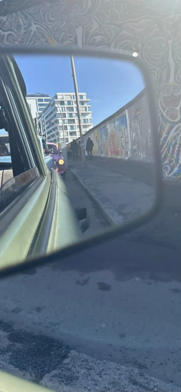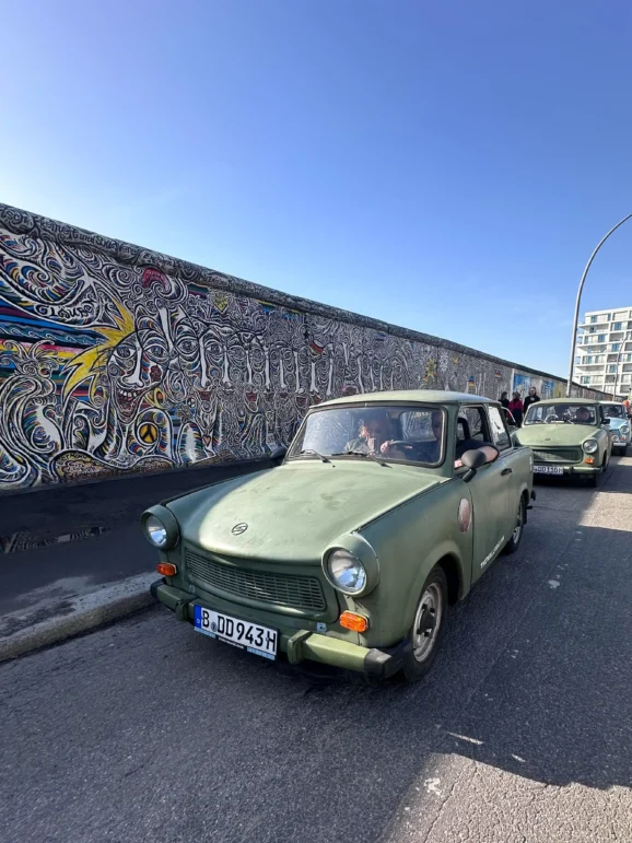 At Café Moscow, the Trabant seemed to perk up, as if recognising an old friend from the Eastern Bloc. From there, we headed toward the East Side Gallery, the longest surviving stretch of the Berlin Wall, now covered in murals. The Trabant’s engine echoed off the concrete, a sound that would have been familiar to anyone who lived in East Berlin before 1989.